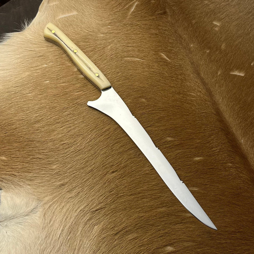 Esta faca fileteira de 8 polegadas combina a tradição da cutelaria artesanal com a funcionalidade que chefs e entusiastas da cozinha exigem. Sua lâmina longa e flexível desliza suavemente entre carne e osso, garantindo cortes limpos e aproveitamento máximo de cada peça.