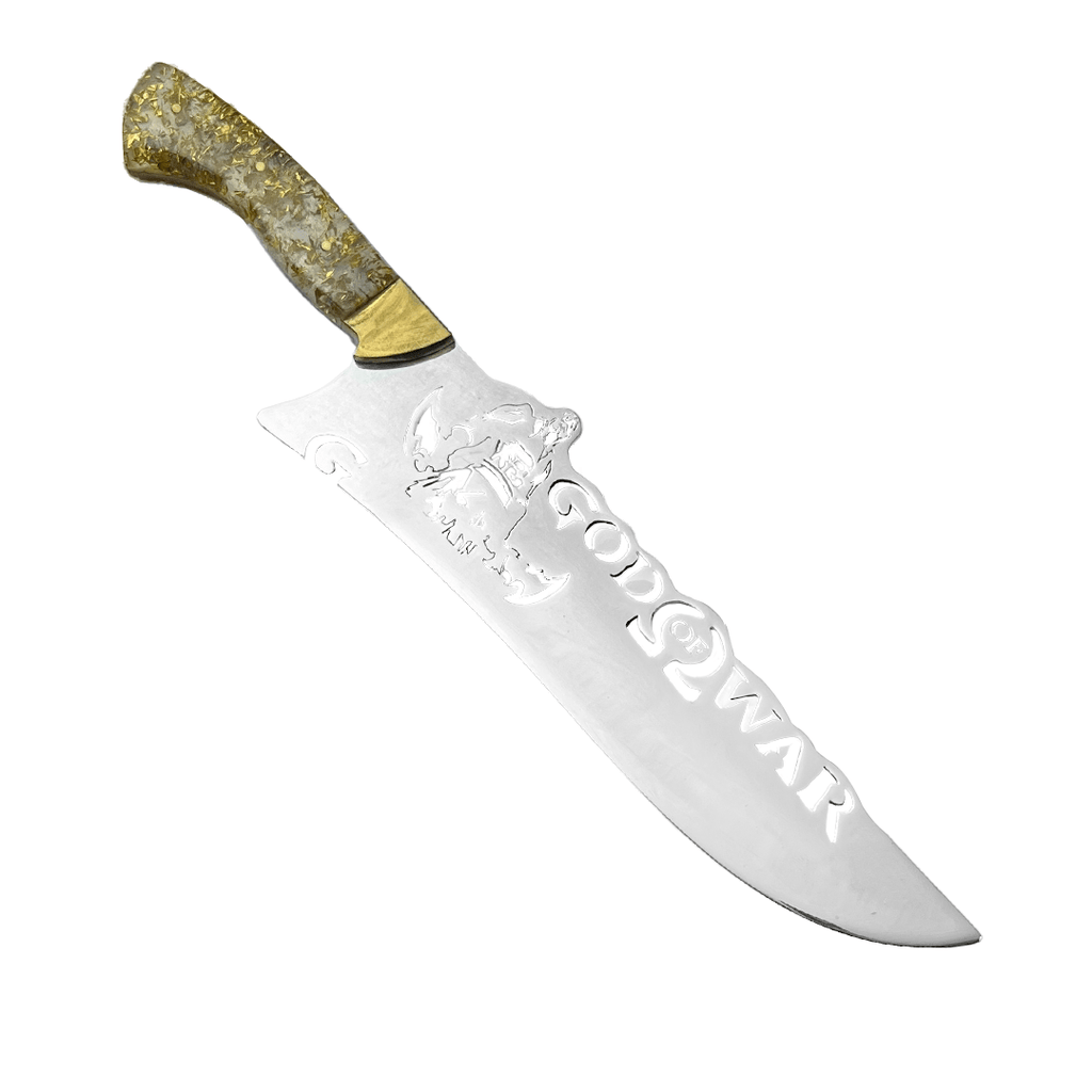 Inspirada na lendária arma do Deus da Guerra, esta faca artesanal une mitologia nórdica e funcionalidade premium. Cada detalhe foi pensado para quem busca uma peça única que transcende o utilitário e se torna arte.