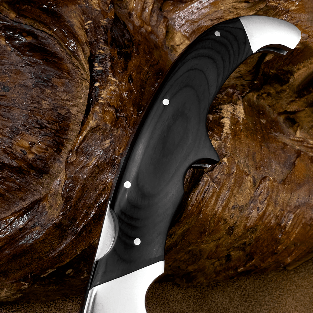 • Lâmina tipo facão: 14 cm de aço robusto com design curvo característico, ideal para cortes pesados e trabalhos em campo